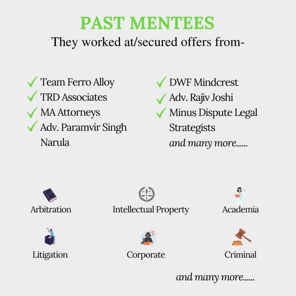 "Dear Team, Yes indeed, I had a great experience with Parikshriti. As first-generation law students, we all know it's difficult to break through the barriers of law and the fraternity and thus it's important to understand the importance of a great CV, Cover Letter and Networking! All of this and much more was covered by her in this session. It was an extremely fruitful session and I was able to learn a lot of things that I was previously unaware of. She was patient and had helped me with all the questions that I had in my mind. I'm grateful to her and look forward to connecting with her even better! Thank you for helping me out!"